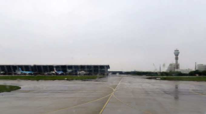 当日天气预报有雨。不过还算幸运,到了机场后,天空才飘起小雨