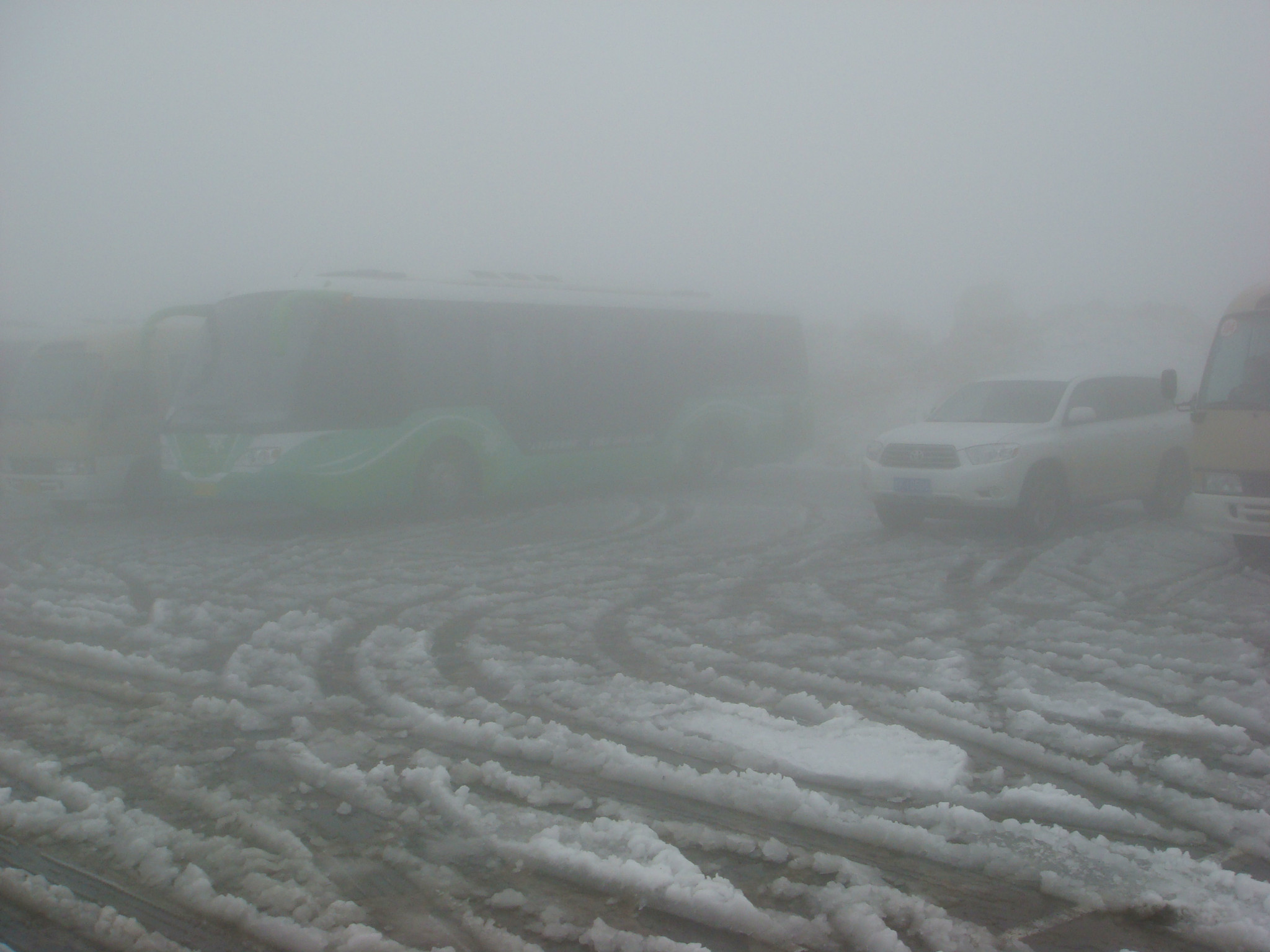 午饭后,听说雪停了天池可以上了,接着找环保车。(回大连之后人家问我爬长白山累不累,我说真是没爬累,坐车坐的到还挺累的。。。)
