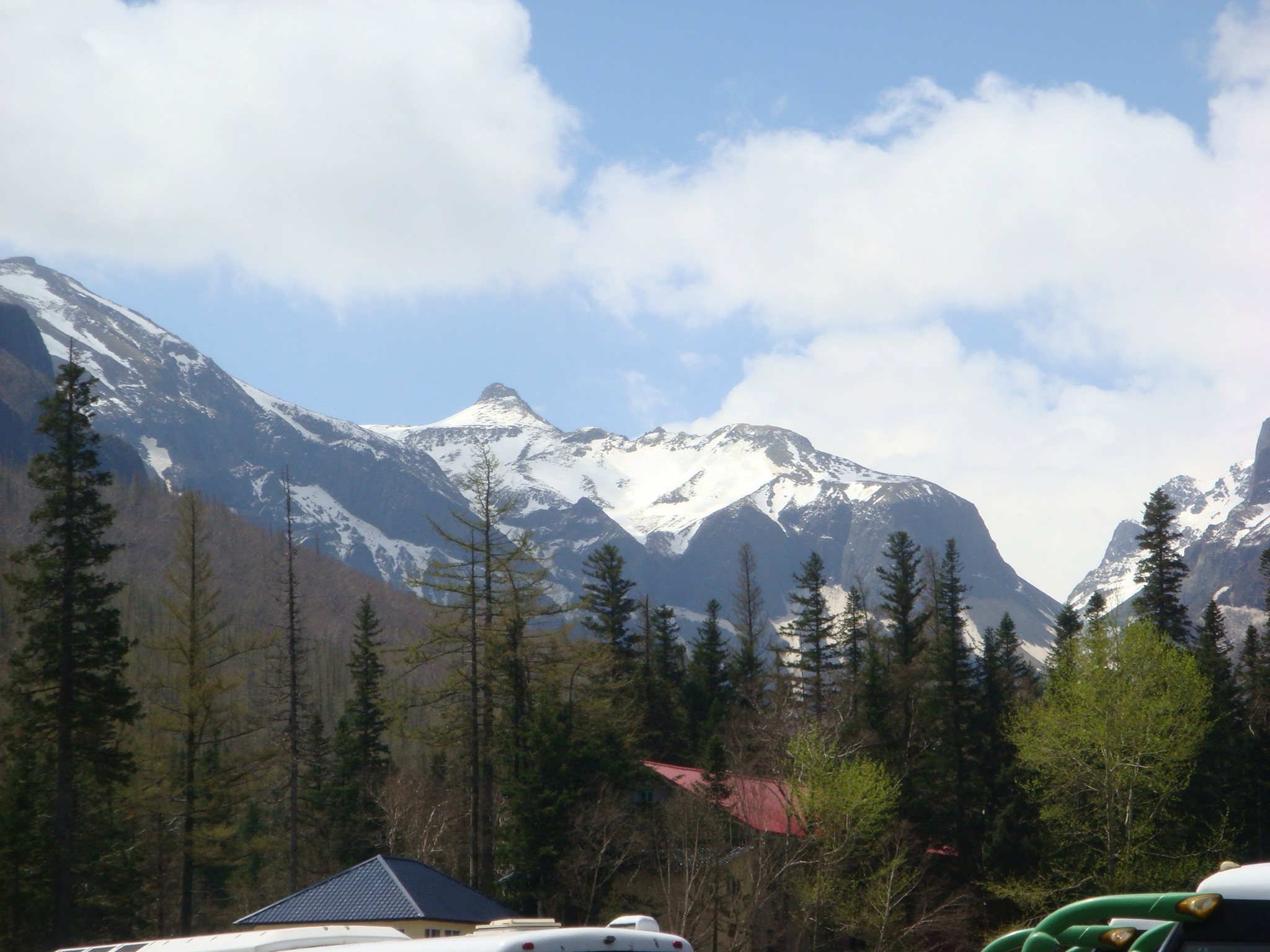 在服务站等车,远眺山顶,嗯,看见雪了。。。