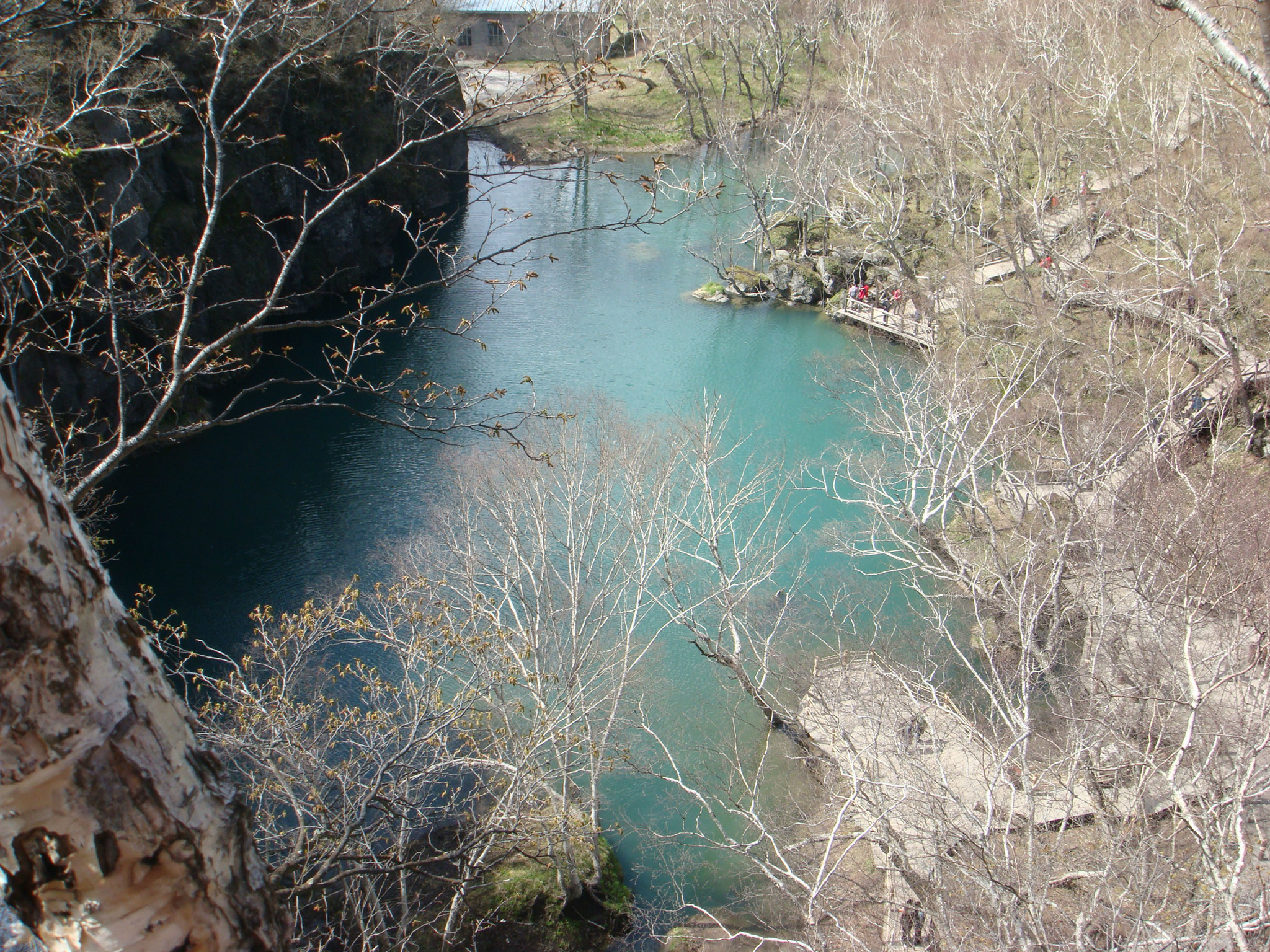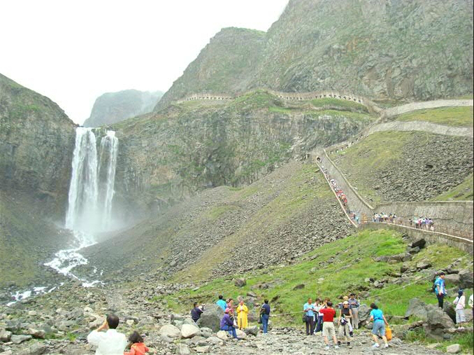 午饭也是在山上解决的,自助餐,又是垄断经营,一样吃的很烂。下午的行程是小天池-绿渊潭-长白瀑布-地下森林。在去长白瀑布的路上有著名的温泉水煮鸡蛋,10元四个,煮玉米5元一个。手拿着玉米边啃边走,突然看见买鸡蛋的那家人挑着几筐鸡蛋往温泉群那边走,光注意看他们了没看路,走着走着突然我就消失在大家的眼前了,扑到鸟(要感谢一下我身后的那位想要伸手抓住我但是没抓住我的帅哥,虽然你么有抓住我,虽然我还是扑到了,但是我一样要感谢你,感谢你没有笑出来,我知道这是需要多么大的毅力和忍耐力的)。。。