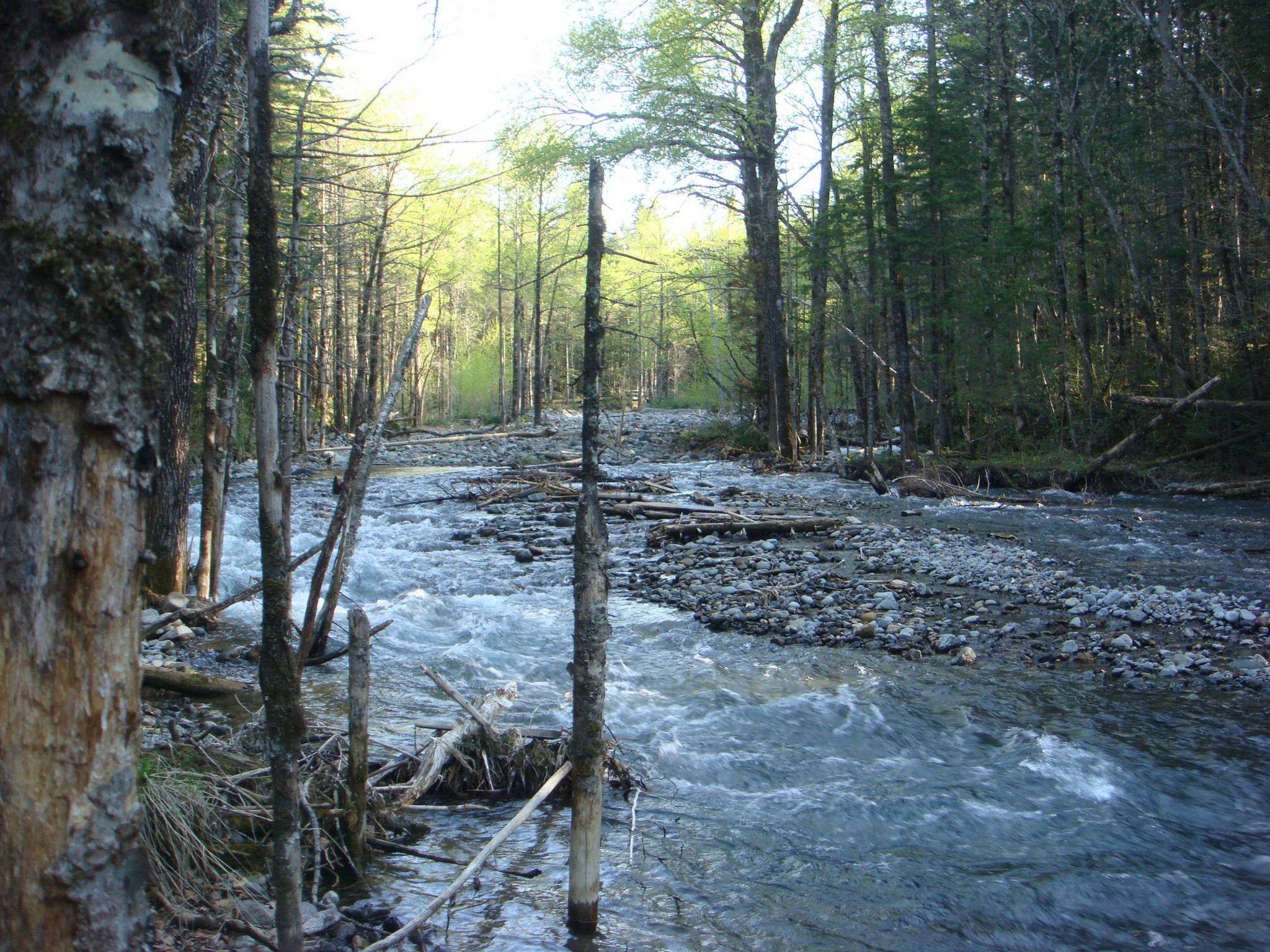 吃过早饭到酒店周围转了一圈,这家酒店建在一片小树林里,酒店前门是一道木质回廊,廊下放了两张台球桌子,绕酒店有一条人工的小溪,出酒店前门右转50米其实就是长白山西坡的一道门,但是那门只是给少数人用的特殊通道。酒店后身的树林里还建了木栈道,直通向几个小水池,看着貌似是温泉池,但是荒废了,还有一个小池塘但是长满了水草。酒店很小但是很悠哉很适合度假静静的呆着。在院子里闲晃的时候突然从树林里冲出几条黑影,看到我们黑影直接过道又拱进一片树林,我们跑过去一看是几头猪,不大,油亮的黑色和黑棕色,酒店的阿姨让我们离远点,说是野猪咬人的。