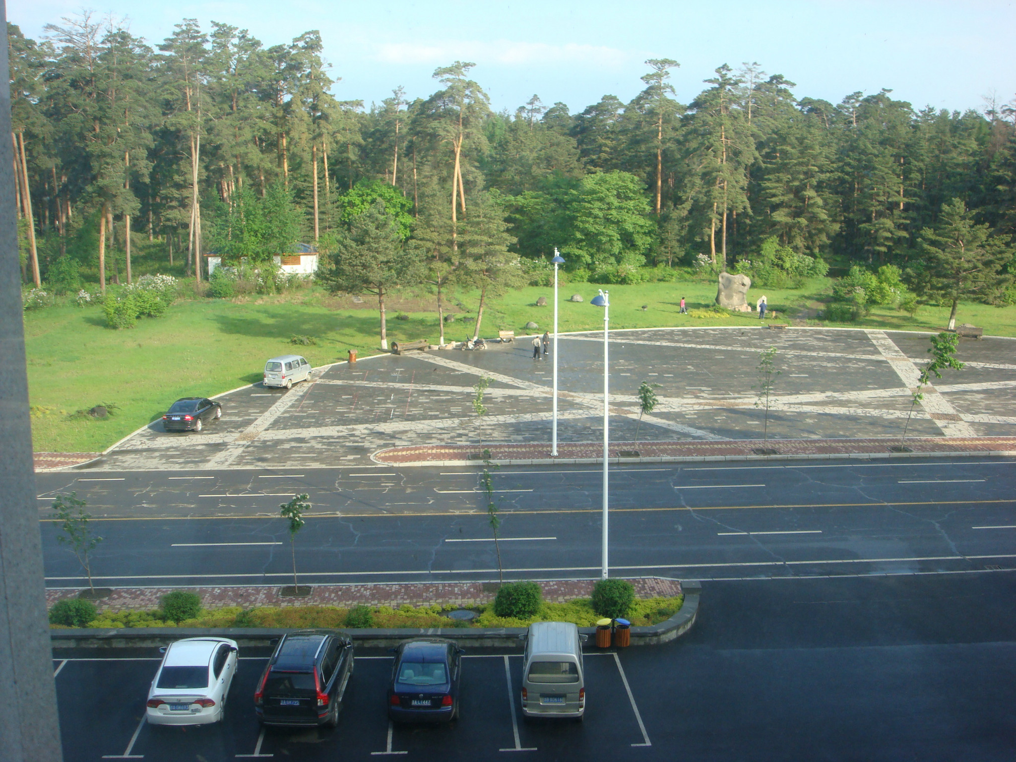 到了二道白河镇上太阳就出来了,穿过美人松苑,就到了我们入住的酒店,金水鹤国际(/poi/28462.html),我们的窗外正对美人松苑。这里环境不错,韩国人比较多,但是早上的自助没看出五星的档次,没啥吃的。