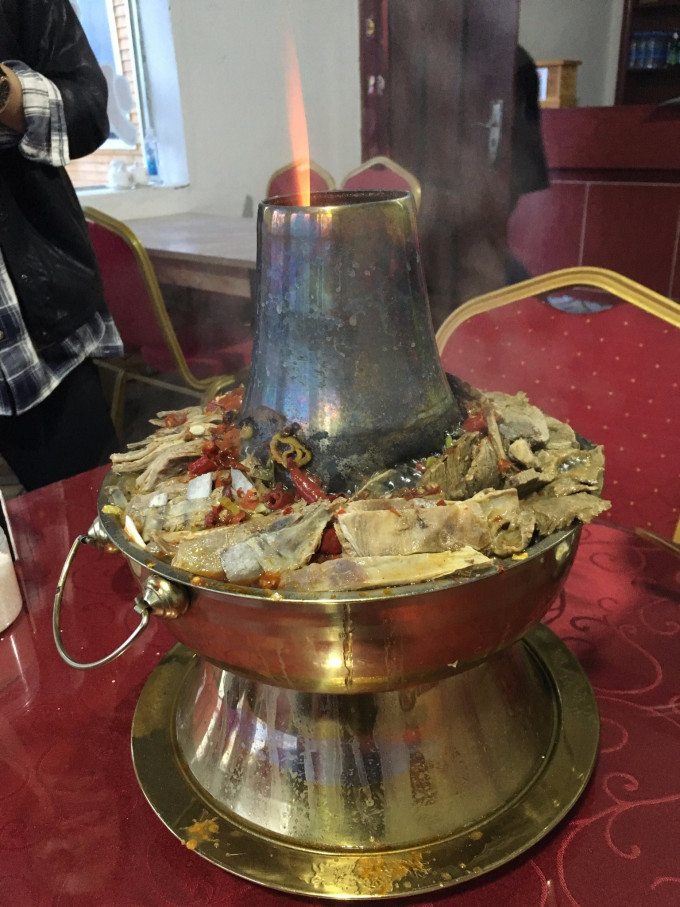 沿路开到黑马河镇,晚上住在小北京旅馆,在他家吃的土火锅,实惠美味。