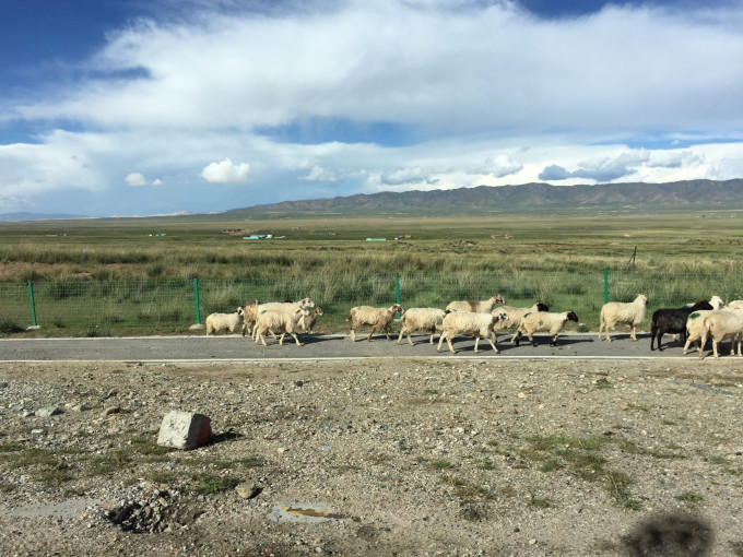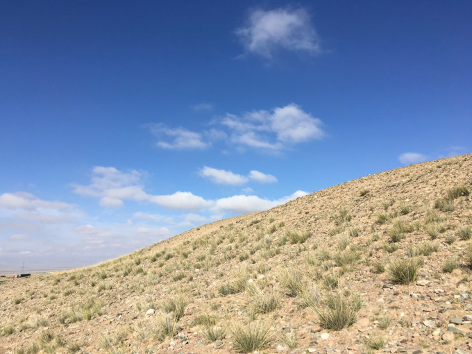 其实过了青海湖向西,地貌就有点变化了,没有青海湖畔那么多绿色植物,荒漠渐渐出现了。