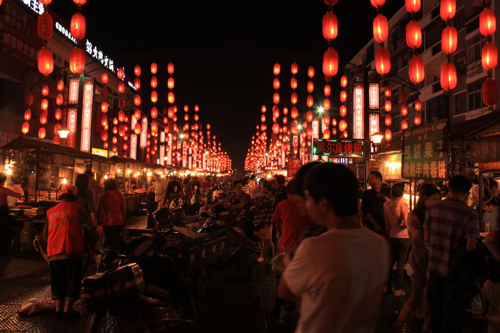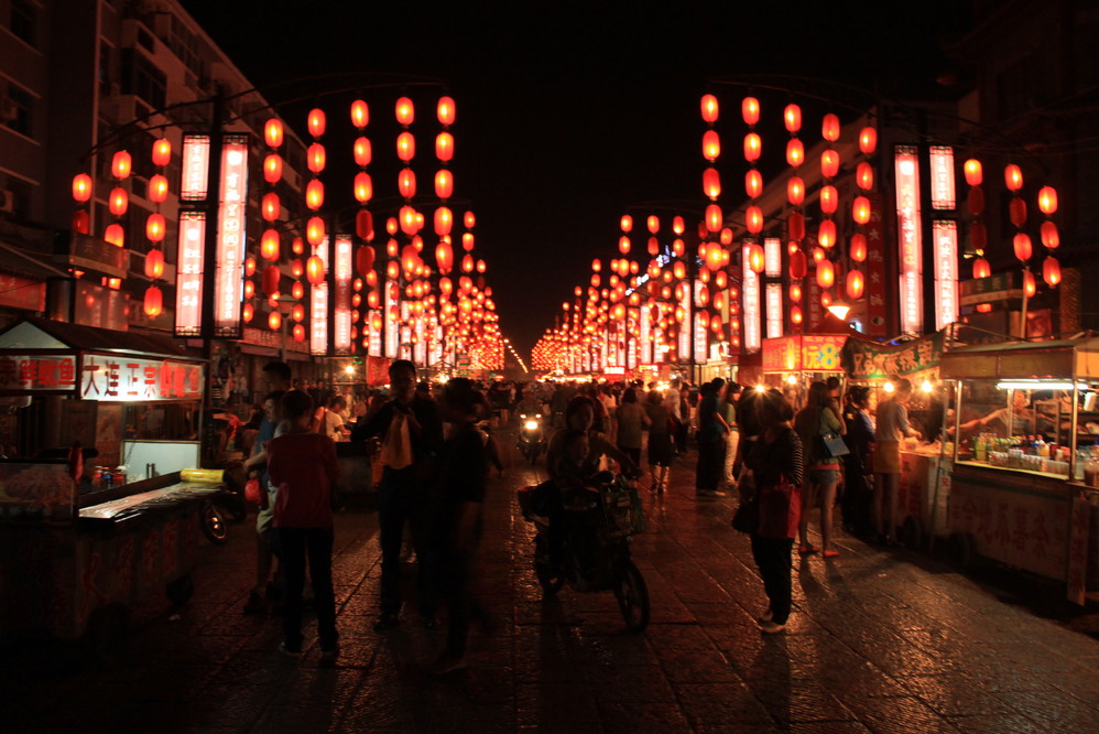 洛阳老街,就在洛阳那个老城门后面。他们说的很热闹的街就是这儿······接着走,然后就会碰一个十字路口,接下来才是他们的夜市,其实挺没劲的
