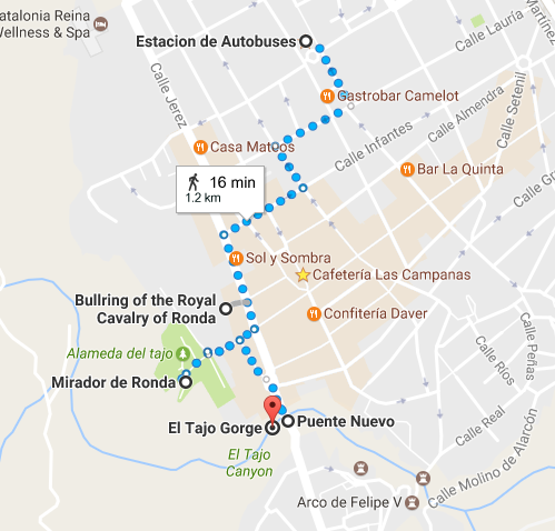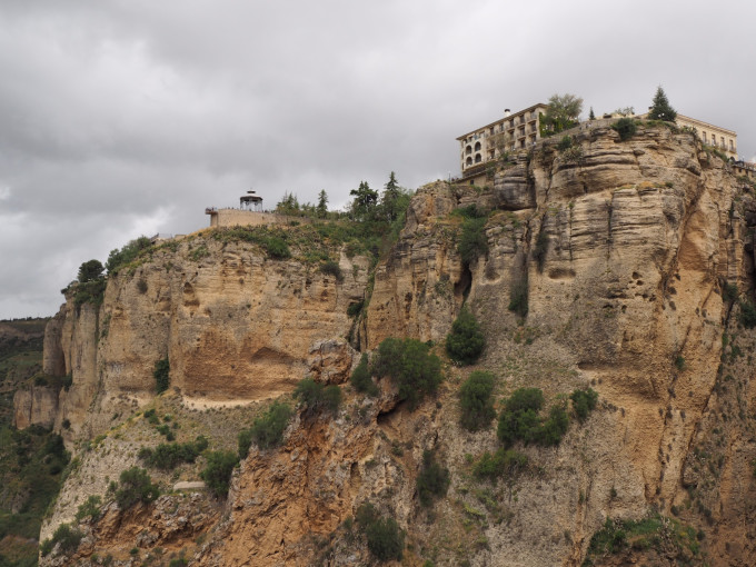 从龙达的汽车客运站走到斗牛场,大约15分钟。斗牛场的旁边就是悬崖,可以眺望远方的景色,沿着悬崖边走就到了新桥,在对岸有一个拍照点,需要走约20分钟。