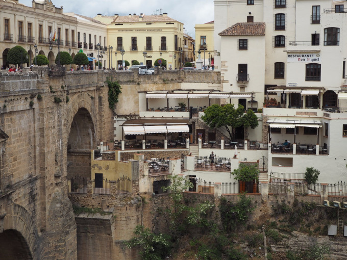 一座新桥(Puente Nuevo)横跨峡谷,气势如虹,将两侧峭壁相连,与山石融为一体,浑然天成的感觉。120m高,历史34年建造而成(1759 - 1793)。作为结构工程师,却不知道此桥如何造成,学业不精,感叹之余不免自惭形秽。