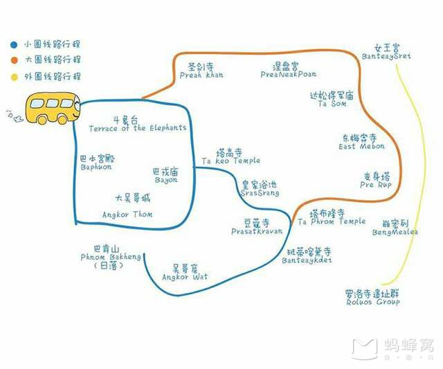 13.行程与景点:我都是看蚂蜂窝定路线和体验项的。去柬埔寨除了暹粒,还有首都金边、马德里和西港。暹粒一般就外圈、大圈、小圈和市区。