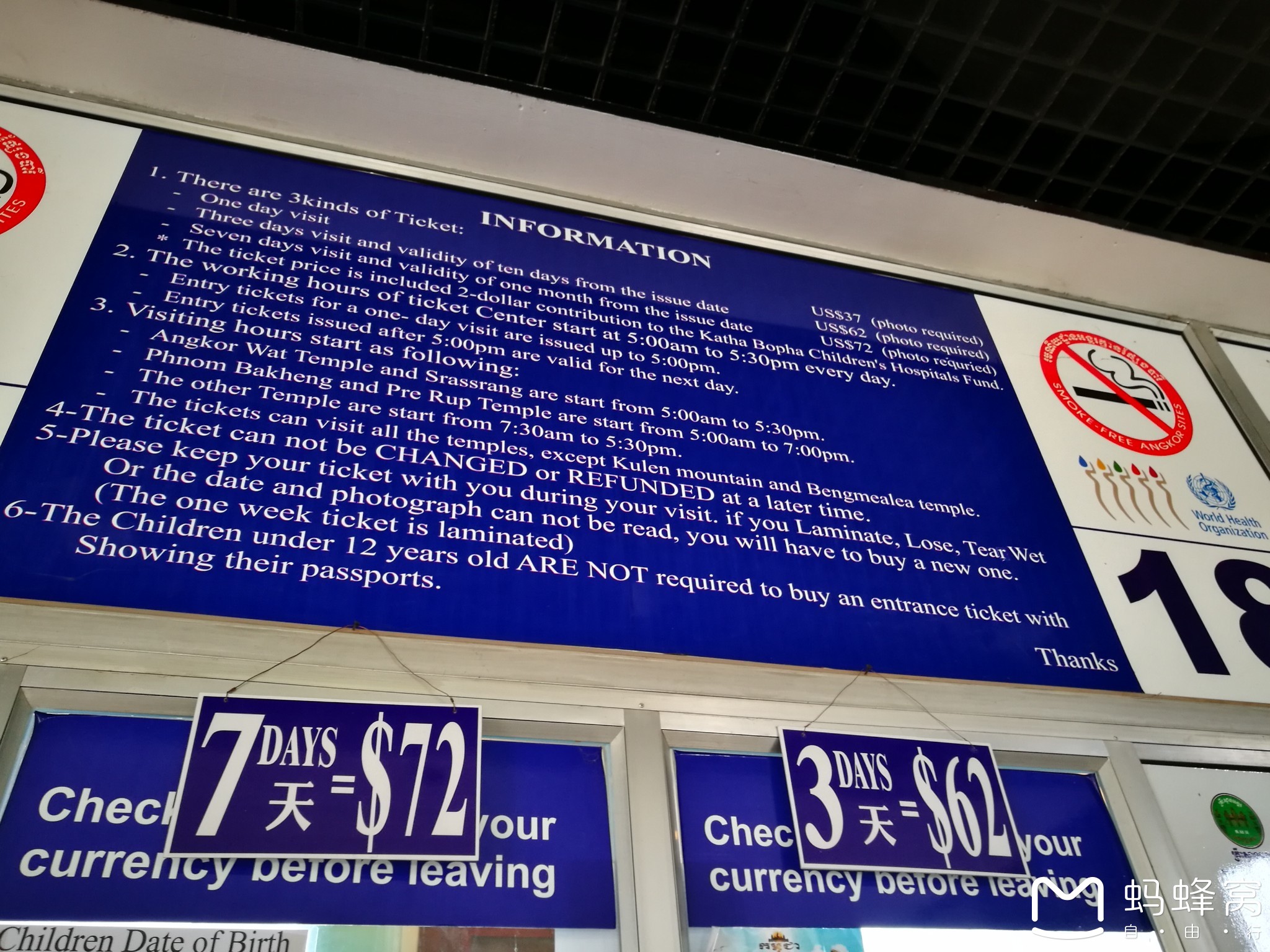 景点的门票购买,是到售票处购买,吴哥城1天票价37美金、3天62美金、7天72美金(2017年2月涨得价,外圈的崩比列、洞里萨湖不算入)