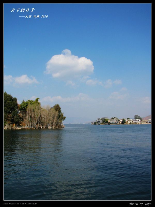 洱海,像一团棉花铺在大理苍山的脚下。抬头,是明亮的摄人心魄的蓝色天空。阳光穿过大榕树上密实的叶,在路上织起斑驳的光影,不时有阿鹏和金花微笑着走过身边,旁边的白族阿妈悠闲的拉着家常。当夜晚来临,洱海西岸的大理古城酝酿着各色情调时,这里的人们却依然延续着他们千年不变的静谧生活。尽管,这里有音乐家三宝的别墅,又尽管,这里是舞蹈家杨丽萍的家乡,画家赵青为她设计了两座名曰“太阳宫”“月亮宫”的私人别墅,又或者赵青为他自己早就在这里先打造了座极具现代风格的“青庐”,但,双廊就是双廊,她并未因此就改变。这个洱海东岸的小渔村,本色,纯真,美丽,风情却不带一丝招摇,于是成为了我和KOKO春节奔赴的方向,开始了我们几天短暂的云下的日子。