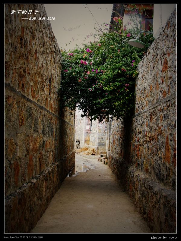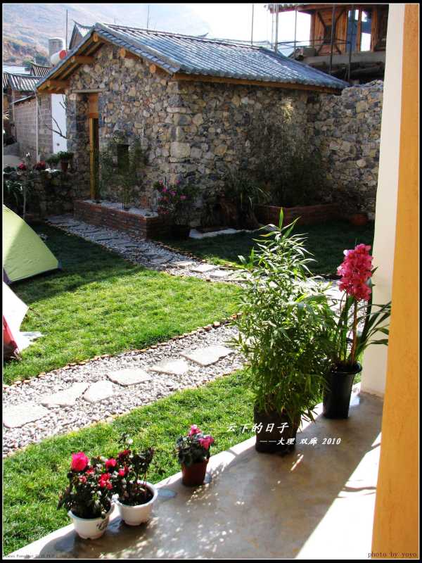 除了晴天客栈,双廊还有两家不得不提的客栈便是海地生活和沧海一粟。我们游荡往“海地生活”时,必经之地花开的正艳,SISSII看到这张照片笑说很适合拍婚纱照。事实上,从海地出来时,年轻的老板娘正遛着他家的拉布拉多和德牧从小巷弄走出来。周遭寂静,我听的见水拍打岸的声音,于是阳光里,花枝下,让人触摸到岁月的静好,这是不同于婚纱照的另一种幸福美好。