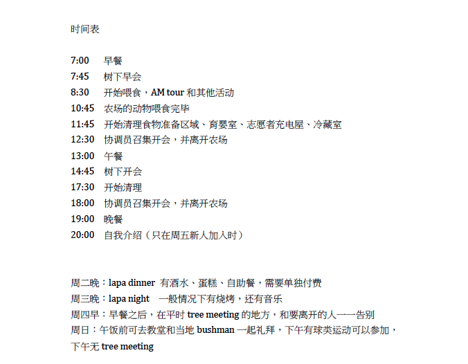 志愿者生活区,四人一间小木屋。第一天去的时候会发一封欢迎信和棒棒糖。卫生间和淋浴房都非常简陋,洗澡热水靠烧柴,经常有鸵鸟和野猪造访。会让人觉得,天哪,这里真的是非洲阿!