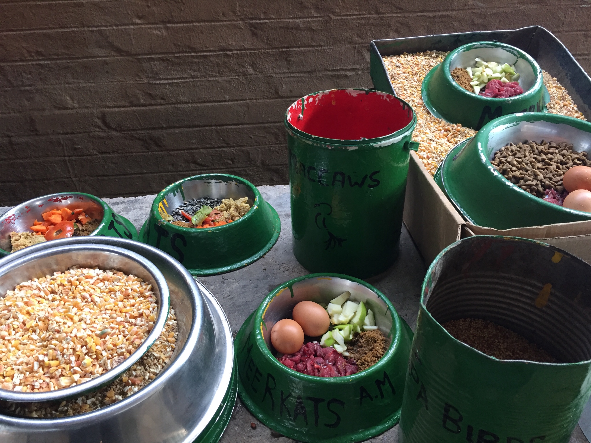 在harnas,最常见的一个工种就是准备食物。志愿者会分为几个小组,每组有不同的动物,负责所有的喂养清洁工作。前几天对于我来说简直噩梦,有太多要记的东西了。上午吃什么,下午吃什么,哪天需要大清扫。我甚至一下子记不住我都有哪些动物,他们都在哪里。