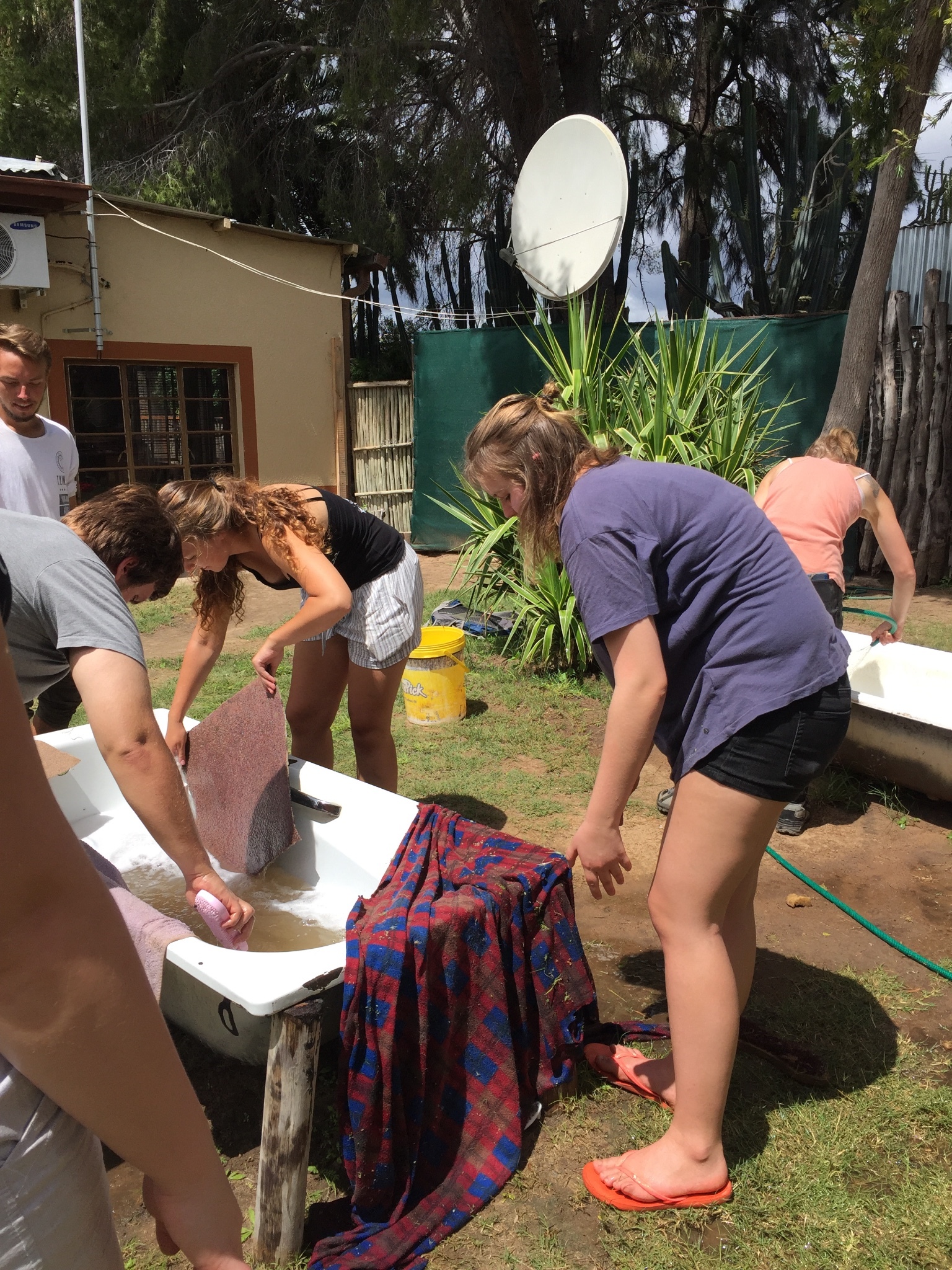 上图就是志愿者们在洗动物用脏的垫子和地毯。以及用来刷各种东西的消毒池。
