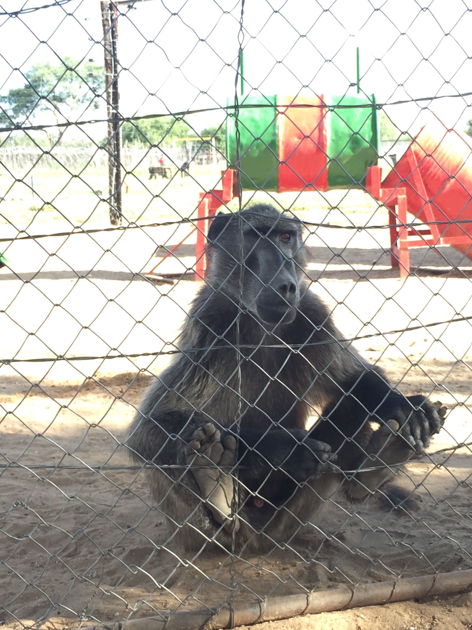 每次喂食最大的挑战是成年的狒狒。每个小组都有几只成年狒狒需要喂养。狒狒们被分为几个小集体,分别是:4 ladies,crazy 6等等。在harnas,喂5只猎豹只需两个志愿者同时进去喂就好,而喂食狒狒则需要协调员的陪伴进入。可见狒狒的可怕之处。每天帮他们喂食打扫都心惊胆战,被咬是再正常不过的事情。