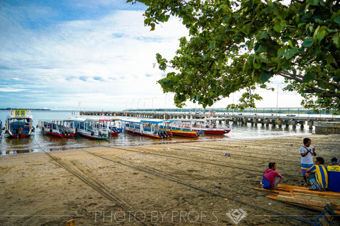 TIPS:车是不能直接送到码头的,下了车还是需要走个一百米的,这一百米,旁边的店铺都写着卖票,但是这些都是私人快船的代理,如果碰到路人,他们也都会告诉你公共船开走了,让你在这里买票。记住,要一直往里面走,直到看到上图的一个栈桥,旁边停着船只,然后旁边你就会看到一个官方的卖票处,你告诉他你要买PUBLIC BOAT TICKET就好。还有,前一天住酒店的时候一定要向司机或者酒店工作人员打听好船的时间,根据公共船的时间再订几点出发。