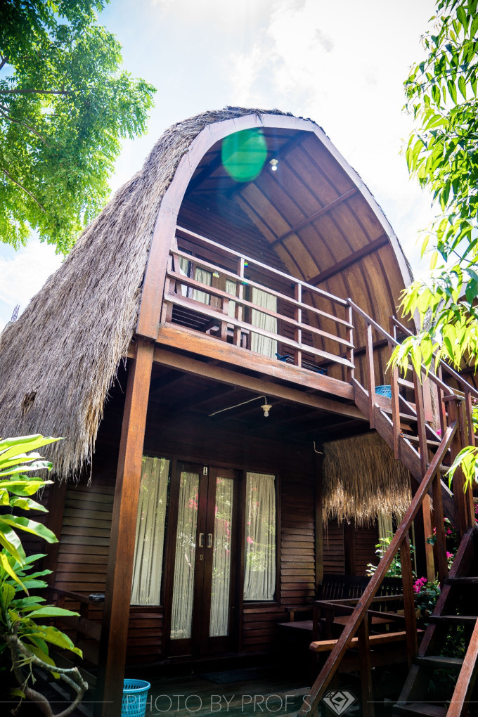 这种本地的印尼民宿建筑风格,与周围的环境融为一体,你无法在她身上找到太多华丽的修饰,也很少能看到类似中国雕花的精雕细琢。不光是建筑的茅草顶和木结构,都将自然元素描摹得淋漓尽致,散发着浓烈的生态地气息。就如同印尼的民族服饰“巴绨克”,简简单单的一块布料,但穿得舒服,看上去也别有风味,不落俗套。