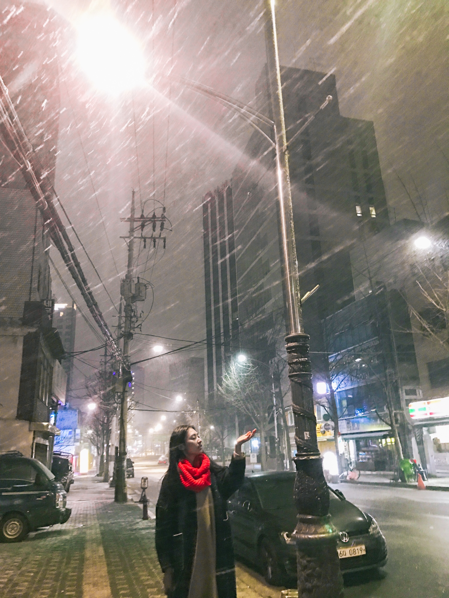 瞬间忘记寒冷(其实已经冷到没知觉),俩人在两三点的首尔街头玩雪啊哈哈哈哈,南方来的不好意思