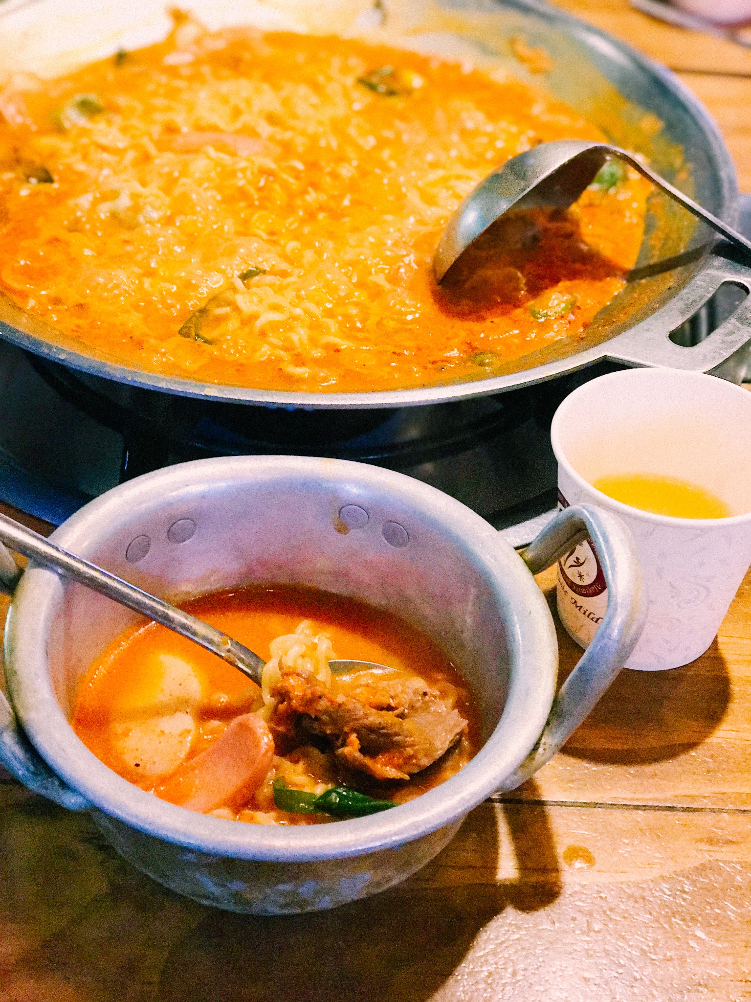冷到实在走不动了进了一家部队锅。味道说实话我已经忘得差不多了啊哈哈因为被冷傻,当时觉得暖和起来就是王道了。