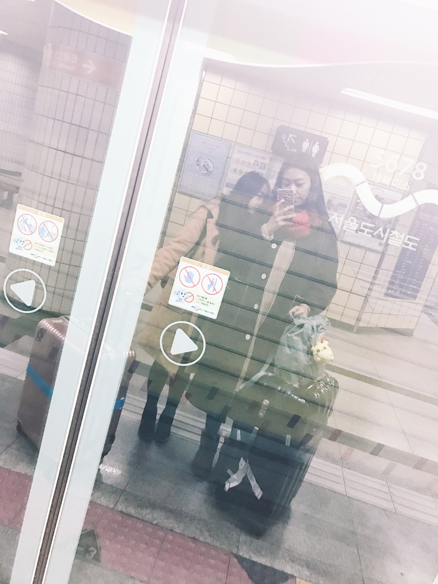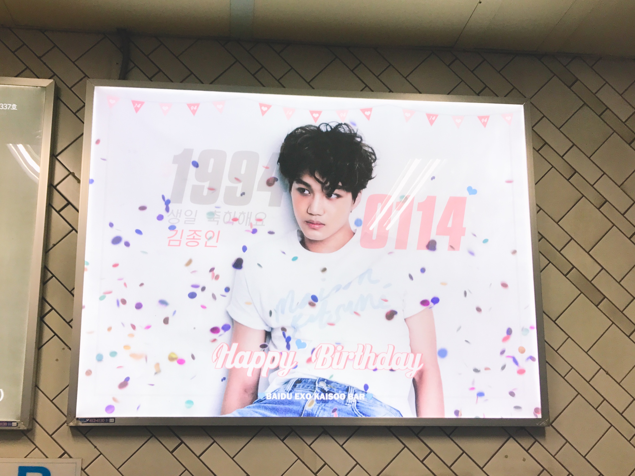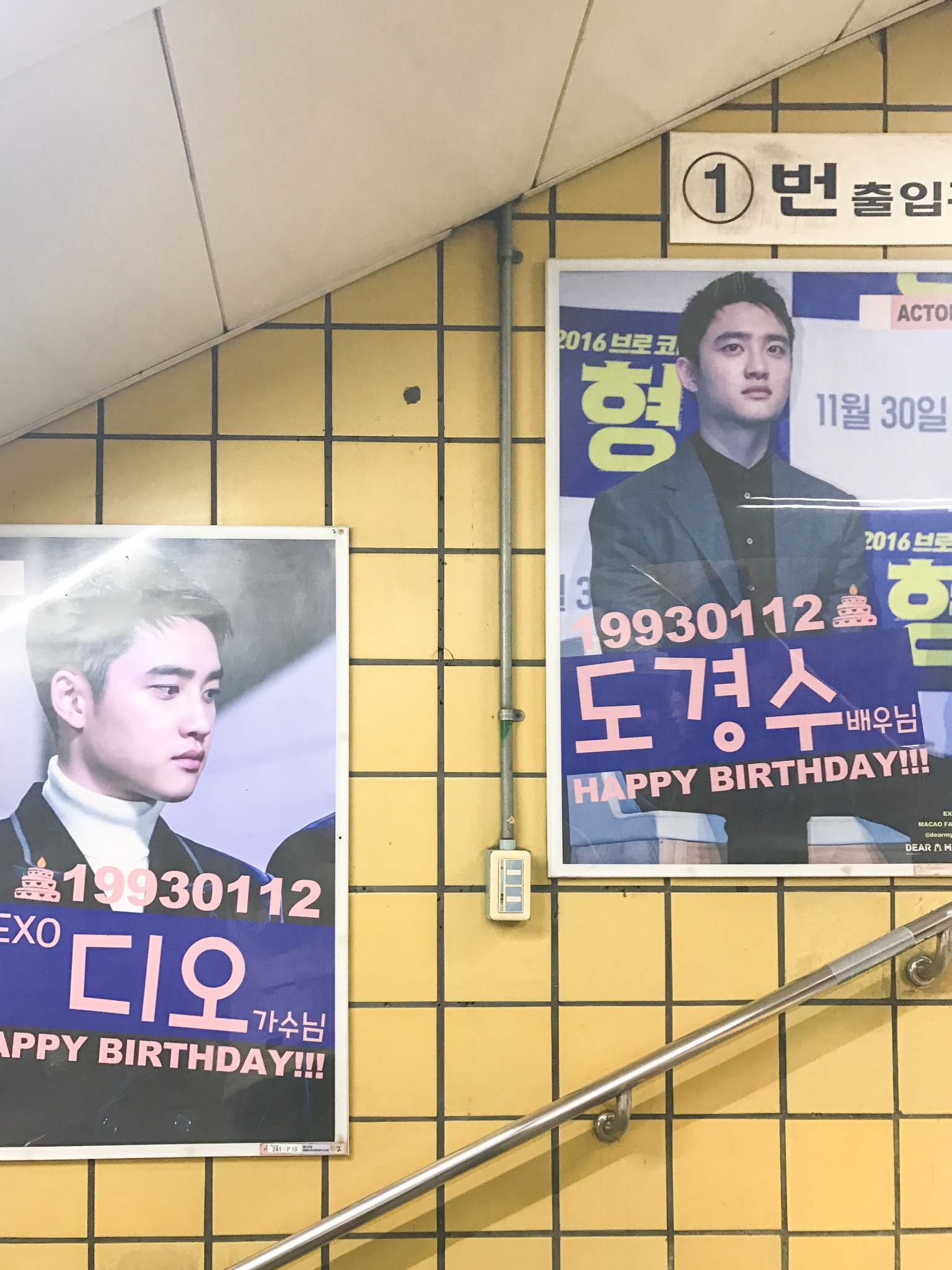 本来还有张嘟嘟的生日应援灯牌也在明洞站,我俩路过的时候人很多,我们就说等会儿回来坐地铁的时候再照,结果回来以后发现--被!撤!走!了!这运气真的