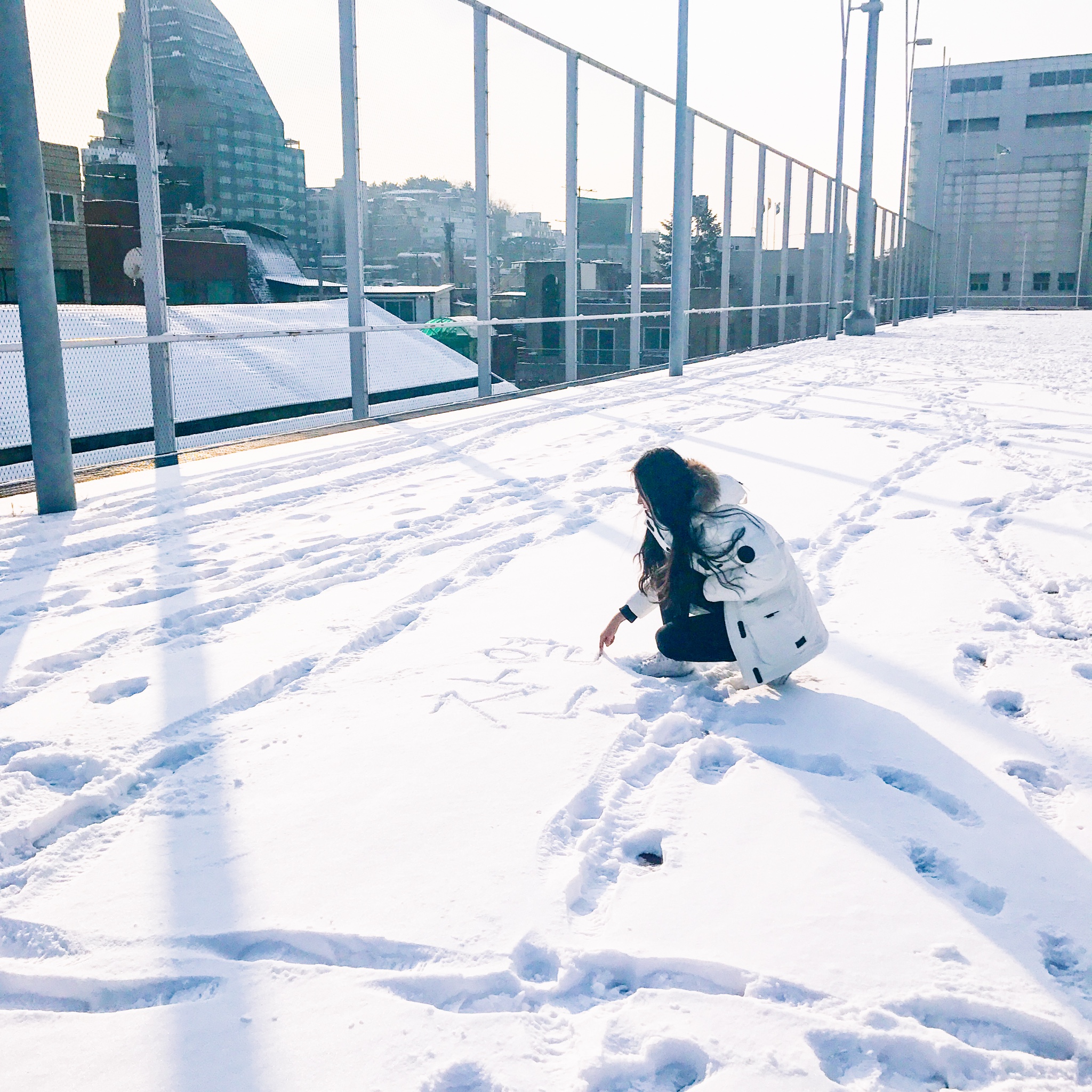 因为和小伙伴念叨了一天要是来韩国的时候下雪就好了,结果真的就下雪了。