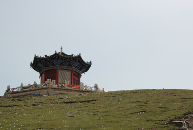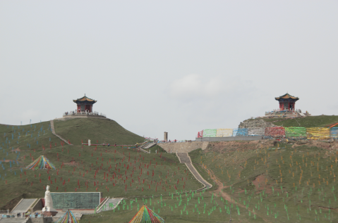 吃完早餐我们开始向青海湖 出发,路况很好,中途经过了多巴国家体育基地,我开始以为就是修在路旁的像体育馆一样的,结果人家是修在一座高高的大山上的,而且一整座山都是他们的基地。路上的风景都很一般,至少对于在重庆 、四川 呆久了的我们来说这样的风景不足为奇!直到我们到了日月山以后,风景就慢慢的变了,农田和树木逐渐变成了黄绿色的草地,还有遍地的牛羊!日月山我们没打算要进去,一个文成 公主的雕像,外加两个小亭子就要收30块大洋,和抢有什么区别。再说风景就在路边就可以看到,于是我们选择路过!