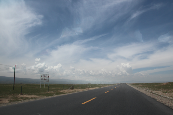 早上出来,天就阴阴的,云很厚,我们很是担心,因为青海湖 的颜色就是跟着天气变化的,天蓝湖蓝,天阴湖灰,天气越好,湖就越美!走在青藏公路上,左边是昆仑山 脉,右边是祁连山 脉,变换交错的云彩,显的公路格外的美丽,想着它就通往心中的圣城——拉萨 ,很是激动呀!