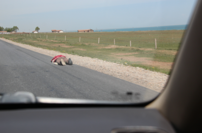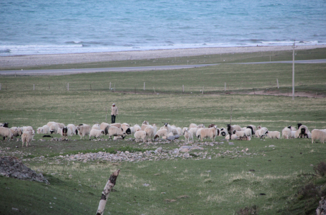 路上遇到磕长头的藏民,走一步就要趴下来磕一个长头,就这样一步一磕头环湖一周。其实他们每天拉着一辆车,车上放着吃、宿要用的东西,先把车拉一段距离,再走回出发的地方,一步一磕头到车的地方。然后再重复!环湖一周是360公里,也就是相当于他们要走上三次,980公里!要磕几个月呢!这是多么坚定的信仰啊。除了佩服,真是无话可说!