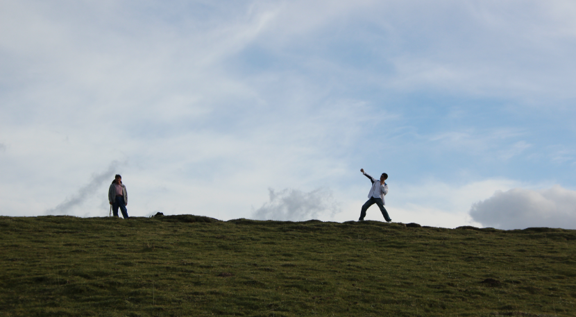 回头望去,感觉自己像在画里!下午四点多,太阳渐渐的没那么晒了,史师傅带着我们去爬山,就是后面那一片绿色的貌似小山丘的山,事实证明这可不是小山丘呀,它老高老高了.......而且这是在高原,爬过以后你才知道这多困难!