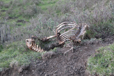 在一个山谷里发现一具整的牦牛骨头,知道吗?这是被狼啃的剩下的!这大山里可是有狼的哟!