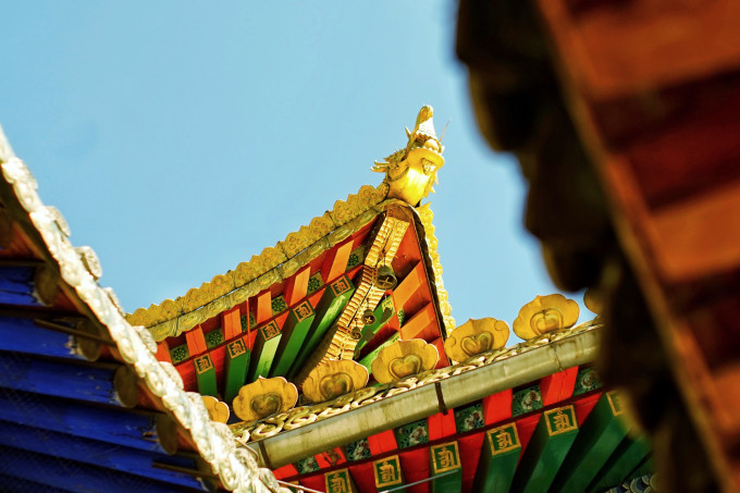 在塔尔寺时的阳光很好,我们抬头望天,感受每一缕阳光在没有云层削弱下的轻抚,是那种微微的让你睁不开眼睛又不会觉得特别烦恼的亮度,晒到皮肤有些膨胀感时,又可在一片阴凉处稍作休息。
