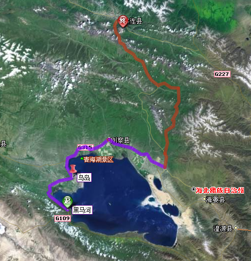 今天的行程是从黑马河 到祁连 县城。途经鸟岛、刚察 县、热水镇、翻越大冬树山垭口 、穿过祁连 冰沟林海,海拔跨度接近2000米。