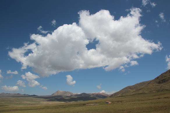 过了鸟岛,一直到热水镇都没有什么风景,热水镇更是被污染的不像话,好在路还比较好!一大朵云,它低的让人觉得就像是一只放飞的巨大气球~~~像童话般的感觉!