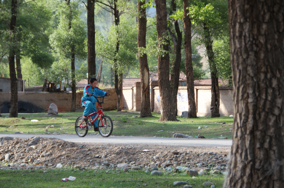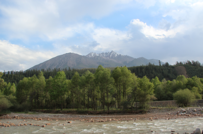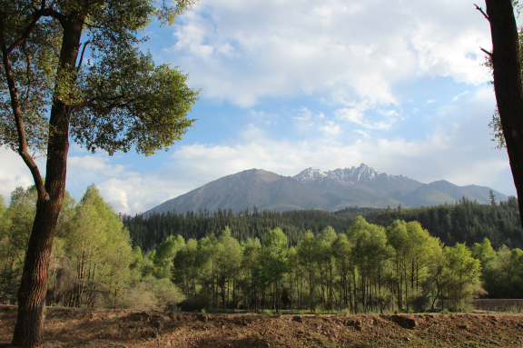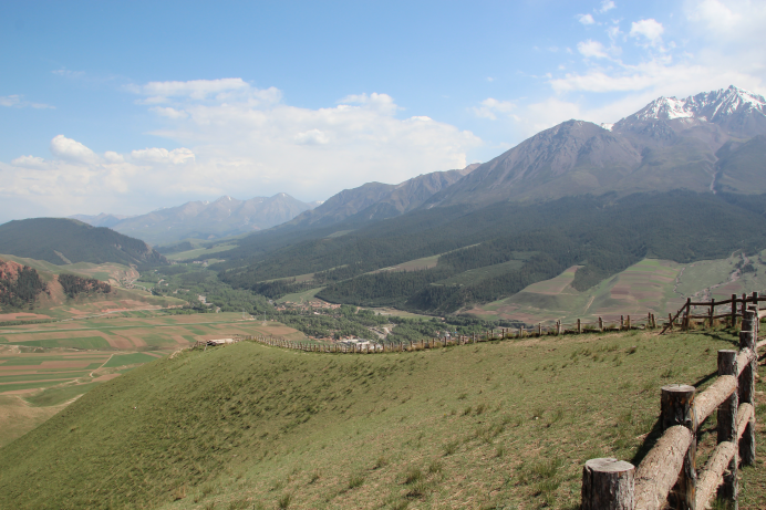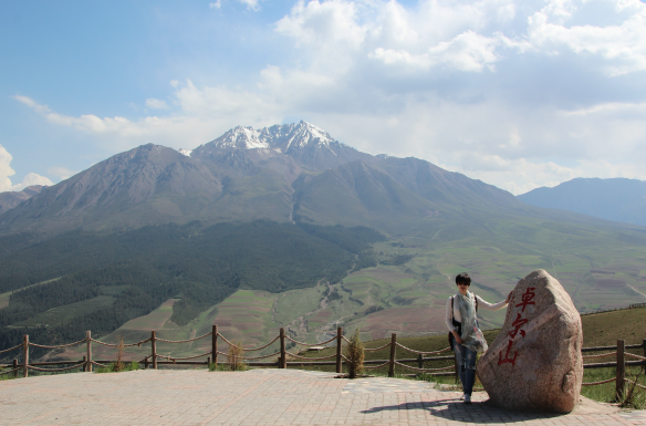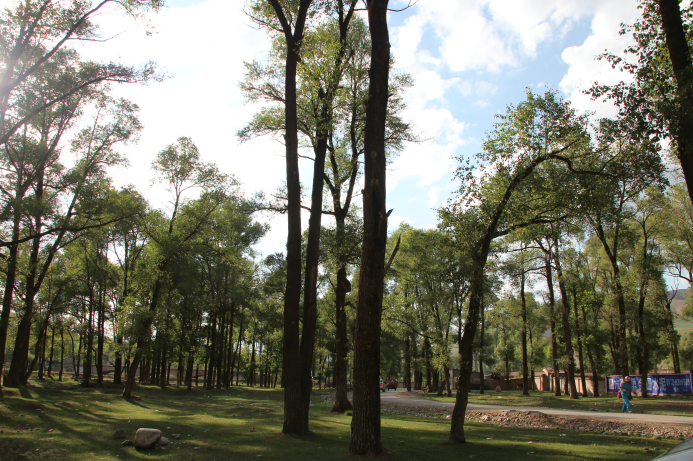 祁连 县城虽小,但是背靠雪山,中间流淌着八宝 河,河的两岸绿树成荫,农田相映成趣,还时不时的有清真寺的绿色圆顶、金色星月标志点缀其中。很有诗情画意!我和老弟都很喜欢这个小县城!