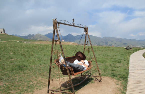 桌尔山上到处都有这样的摇椅,我就是看到别的驴友攻略里的这个画面被吸引到这儿的。别人都说这个时候的祁连 没有多少景色,但我还是坚定的来了!