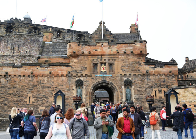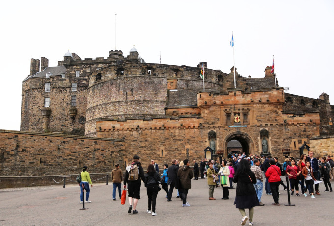 苏格兰人的历史风貌,只体现在城堡上的古炮、城墙、战争纪念馆和博物馆之中。图片中不少游客在排队等候参观城堡博物馆。