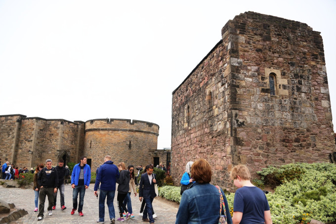 爱丁堡城堡是爱丁堡甚至于苏格兰的精神象征,耸立在死火山岩顶上,居高俯视爱丁堡市区,每年八月在此举办军乐队分列式(Military Tattoo),更将爱丁堡城堡庄严雄伟的气氛表露无遗。爱丁堡城堡在6世纪时成为皇室堡垒,自此成为重要皇家住所和国家行政中心。今天早上我们从邓弗里斯出发,到这里已经是中午12:20分了,导游安排我们在城堡下面的酒店吃完午饭,下午就来这里参观爱丁堡城堡。
