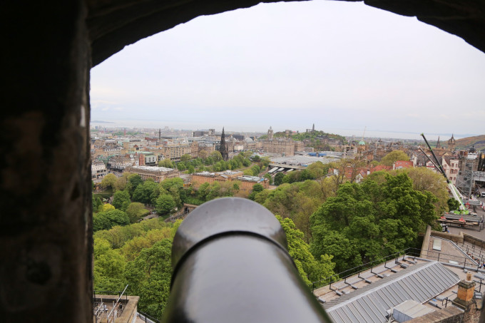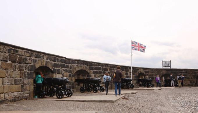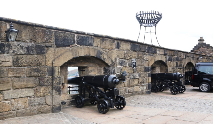 爱丁堡城堡曾经是堡垒、皇宫、军事要塞和国家监狱,因此防御就显得犹为重要,如今在古堡的城墙上,还能看到整整齐齐地安放着一个个乌黑的古炮,