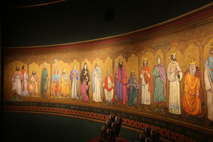 城堡中央是王宫广场,16世纪的王宫建筑还耸立在广场的周围。广场东边的宫室是当时国王的起居之处,里面有一间被称为“吉斯的玛丽之屋”,是一处和玛丽女王有关的古迹。而包括雕饰得豪华富丽的南侧会议厅在内,除了平时向游人展示外,很多东西如今还可以使用,今天人们还常聚集于此举行各式各样的礼仪性聚会。我们进入看了看,不能拍照。