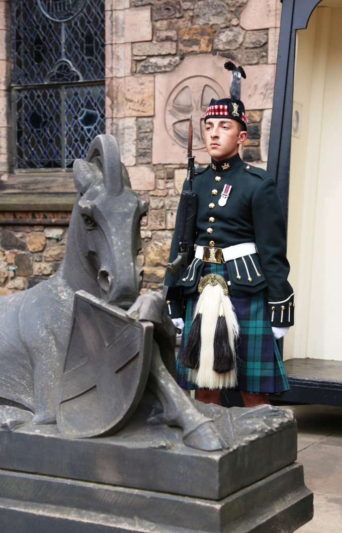为了配合这些颇具古风的建筑,古堡城门口站岗的哨兵依然保留着身穿苏格兰传统的服饰的传统。最能代表苏格兰风情的方格短裙,加上佩带的短剑,以及头戴黑色无边软帽,令他们更加雄壮、威武。