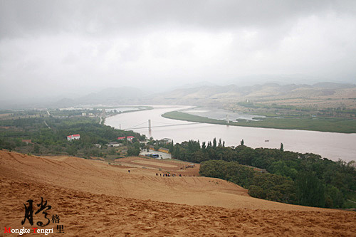 从通湖出来,直奔了沙坡头 景区,司机带我们去了附近的一个黄河 大拐弯处,眺望黄河 ,下面有一个羊皮伐的上岸处,