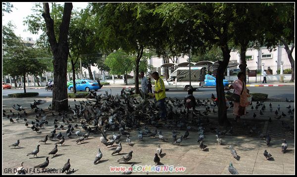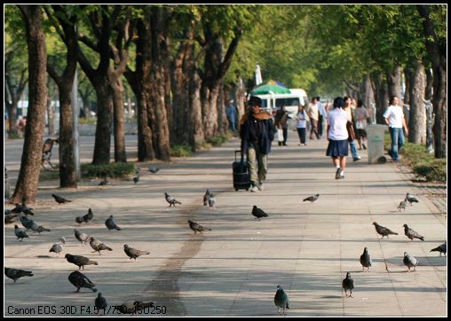 早就听说去大皇宫的路上有人天价兜售喂鸽子的玉米,所以我们一路上都没理会他们。走在路上,看到黑压压一片的鸽子飞向你,在别人眼里是风景,在自已心里就是担心了,至少我就担心,真怕哪只鸽子冷不丁的就在你头顶上投下一块见面礼,一块还好,要是一堆,那就太隆重了。。。。。。所以,若你此时正看到一个用双手挡着头,猫着腰一路小跑的人,恭喜你,那就是本人了。