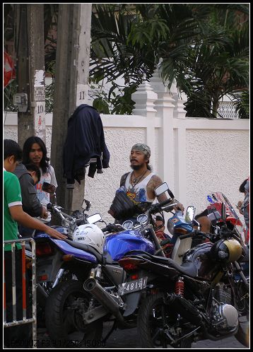 去大皇宫的路上,一路都看到很多人在车流中忽左忽右,速跑急停,我们看在眼里着急啊,要知道,曼谷 街头的车那是个顶个地快啊,摩托车都跟蝗虫似的唿哧哧一片,后来才发现,原来没个人行横道,我的神。自然偶们也逃不过如此那般地惊心动魄啦。