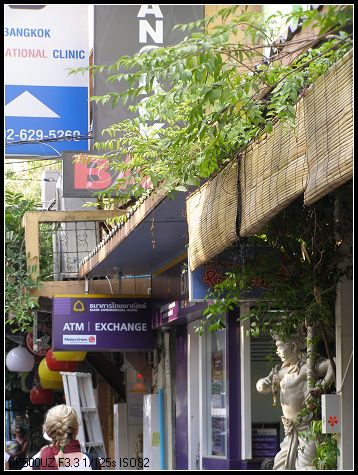 曼谷 机场有电话卡卖,99铢的happy card内含35铢的话费;货币兑换店,持港币和美 金换铢的人建议在机场兑,港币当天是1:4.38,美金当天是1:34.33;持人民币的还是在国内换吧,国内换1:5.09,泰国 换才1:4点几。出机场二楼有出租车服务中心,快速但比较贵,去考山路 要450铢,据司机说其中的50铢是给服务中心的,我们讲价到400铢包高速路费(高速费60铢)。后来才知道,从三楼自已打车可200铢,路费自付,只是找到出租的快慢就凭运气了。