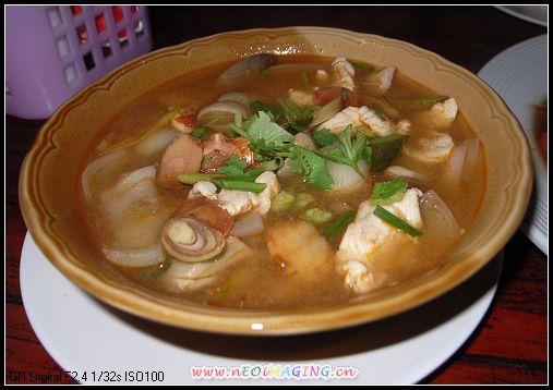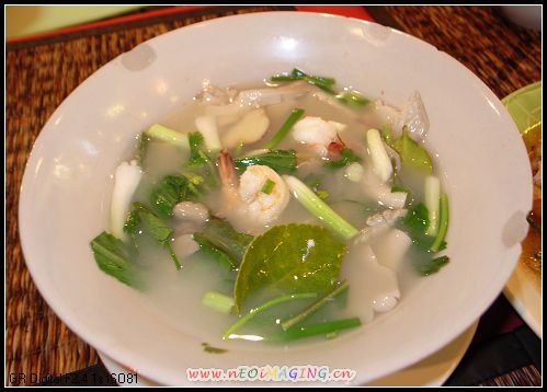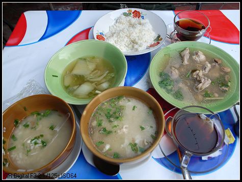 今天要去苏梅了,去楼下吃早餐的时候没有忘记品尝旅店外面的本土早饭。说来奇怪,这早餐怎么跟咱们的午餐一个样啊?有蘑菇汤、冬阴汤、肉丸汤、还有两个我忘记了名字的汤,各配一个米饭,每份20铢,都是当地人去吃的。我点了份冬阴汤和肉丸汤,连着旅店的早餐,那个饱啊,嘿嘿,那个美味啊,以至于后来的每餐我都必点冬阴汤,呵呵。只可惜,此后在泰国 的日子里再也没有吃到过能跟这个冬阴汤相提并论的了。在曼谷 的小吃档或者店里,有一个特点,若你是打包走的话,无论是干食还是汤食,都用类似我们超市里的那个食品袋去装。起初我还担心它的安全以及对身体健康的影响,后来也适应了。