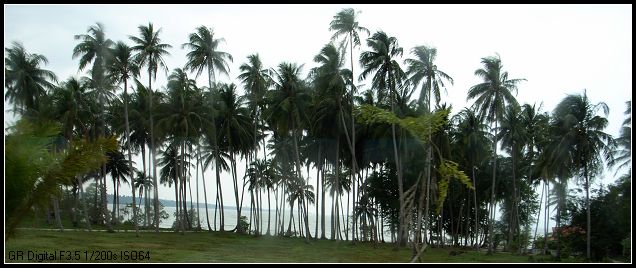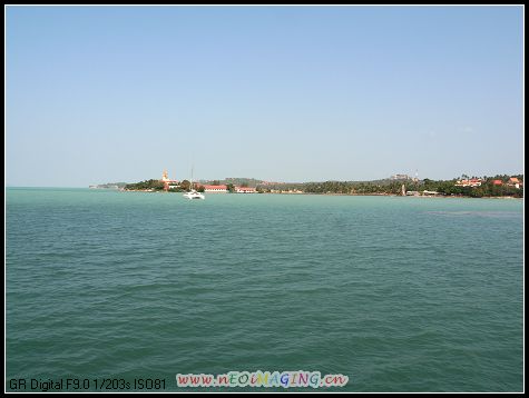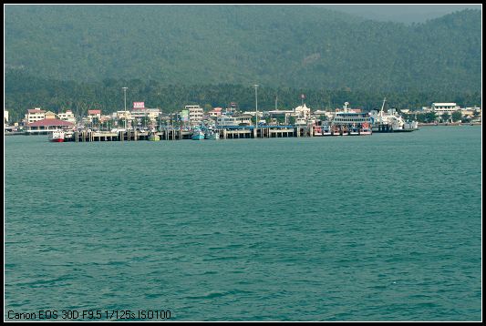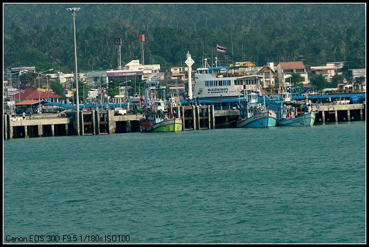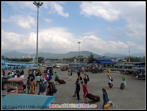 其实苏梅岛 上有机场,在岛的北部,泰航的飞机就停那儿,然后打个的士或者坐个巴士又或者TUTU什么的就可以到海滩了。而亚航的飞机就只能停素叻他尼 机场,然后坐机场的大巴约 2小时到码头,再坐船约1个半小时到苏梅岛 的那通Nathon码头。额的神,看在廉价机票的份上,偶们忍啦!不过,话说回来了,这样一路走来的风景,直飞是比不上的,有得就有失,绝对真理!机场大巴和船票是捆绑的,700铢/人,到达那通码头后,坐TUTU 每人60铢可到查武恩Chaweng海滩,再坐约10分钟便可到拉迈Lamai海滩。