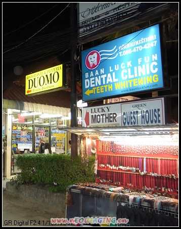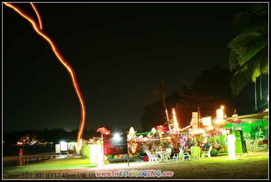 回到查武恩海滩 已是夜色茫茫,辛苦了一天的我们想去海滩来个“马杀鸡”,不料,早已马进棚鸡入笼,不甘心,还是来到街上的一家店给脚“马杀鸡”了一回,250铢/钟。呵呵