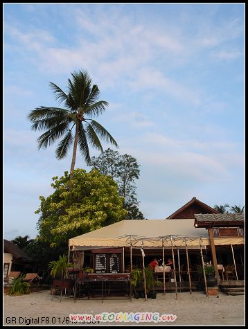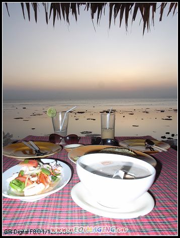 夕阳西 下,我们决定留在路边的一个花园餐厅用晚餐,它就在涂滩边,前面宽阔无比一览无遗,是观看日落的一个绝好地点