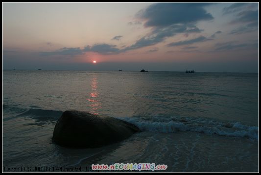 又是一个落日时,大海披上了夕阳的余辉,神秘而性感