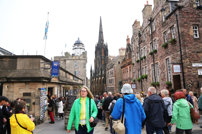 从爱丁堡古堡出来是一条大街,由东偏北,长约一英里多,称之为“皇家一里”,是爱丁堡著名的街道。我们团队不少同伴在街道第一家商店购买羊毛围巾。然后仲导带我们一起沿街道向前走。